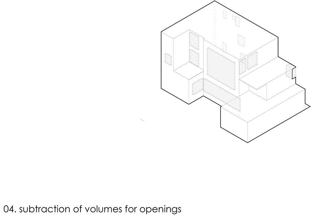 Surrounded by a tall four-story apartment building on the western side, a two-story house on the eastern side, and another tall apartment building on the southern side, Sarayu House is designed to maximize natural sunlight from the northern and eastern sides of the plot.